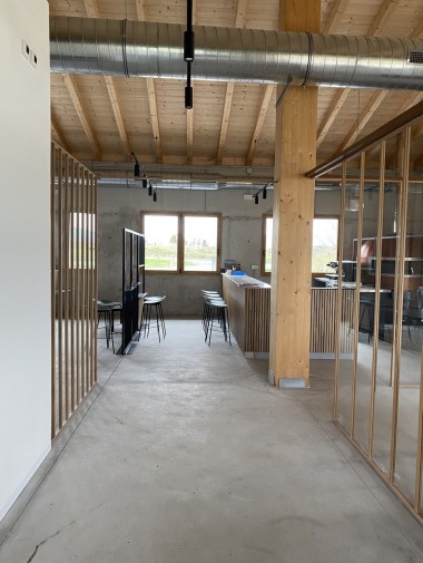 Nueva edificación para el fomento del turismo y oferta de productos de la zona. Junto a la nueva edificación se proyecta la reforma de la nave agrícola existente para reconvertirla en pabellón cultural.