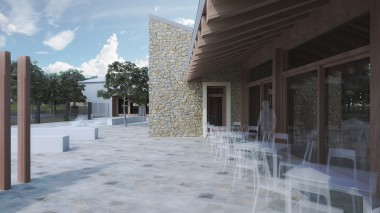 Nueva edificación para el fomento del turismo y oferta de productos de la zona. Junto a la nueva edificación se proyecta la reforma de la nave agrícola existente para reconvertirla en pabellón cultural.